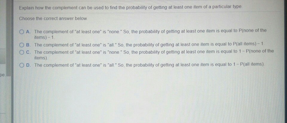 How do you calculate probability of outcome? Round your answer to three decimal places. A simplified proper fraction, like. Each and all coins are tossed fairly. How can i calculate the probability of at least one item in a series? Find the probability that all students selected do not prefer math. How do you calculate the binomial random variable? We know the probability that a student prefers math is p. Feb 14, 2021 · if we're calculating the probability of at least one success or at least one failure, we can use these formulas: Find the probability that at least one of the selected chips is defective. How do you calculate probability between two numbers? Jan 05, 2021 · we can use the following steps to answer this: Dec 23, 2016 · • all probabilities larger than the given probability ("at least") • all probabilities smaller than the given probability ("at most") the probability of an event, p, occurring exactly r times: